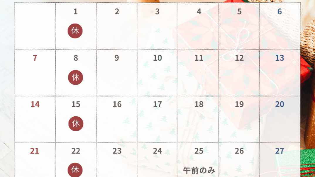 12月の施術日カレンダー